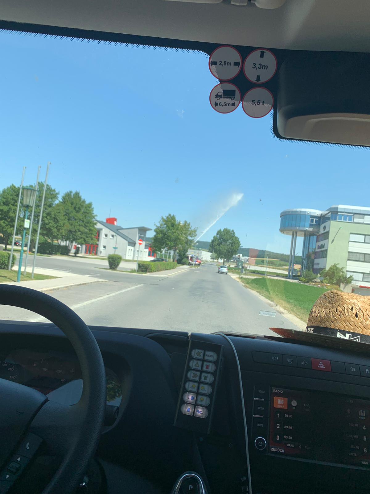 Am nächsten Tag wurden wir von unserer Feuerwehr bereits mit Wasserwerfer und Sekt feierlich empfangen.