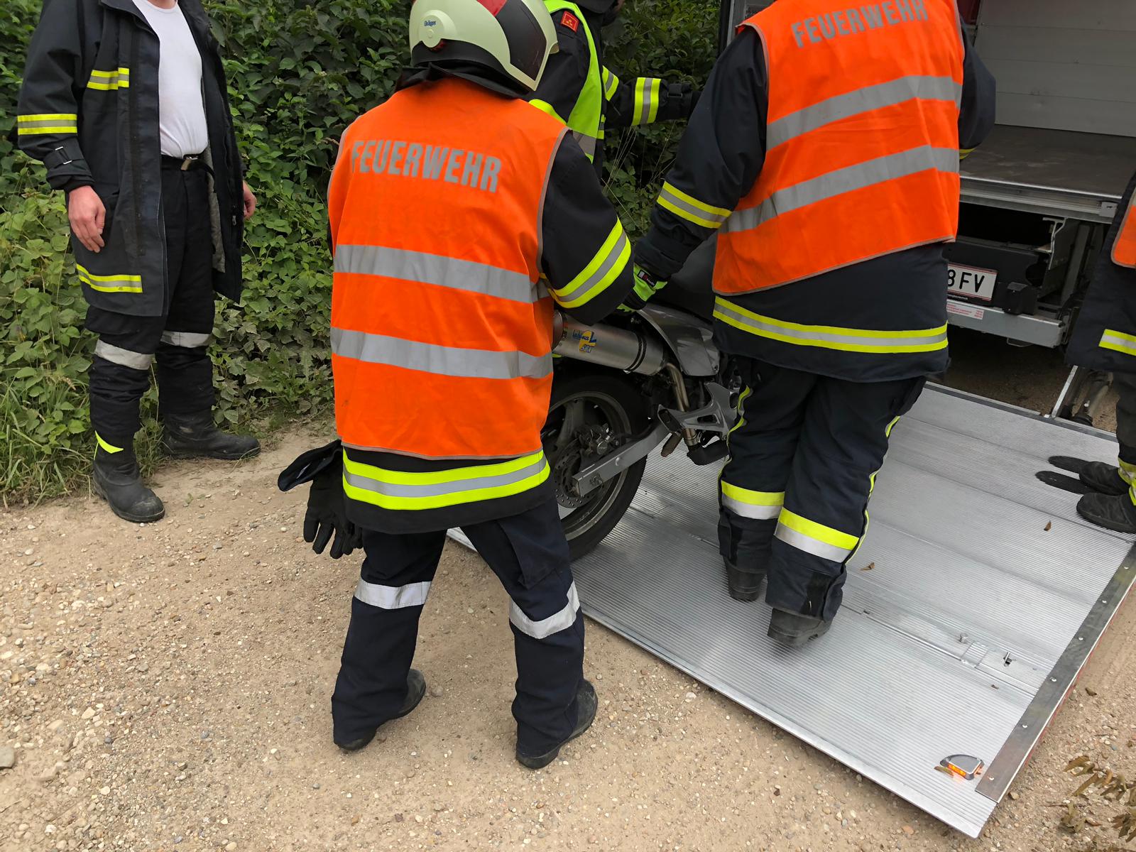 Am Einsatzort angekommen war bereits die Polizei vor Ort und der Lenker des Motorrads war bereits mit der Rettung auf dem Weg ins Spital. Das Motorrad, welches sich noch auf der Böschung befand, wurde geborgen und mit dem neuen Versorgungsfahrzeug (VF) von der Unfallstelle weggebracht.