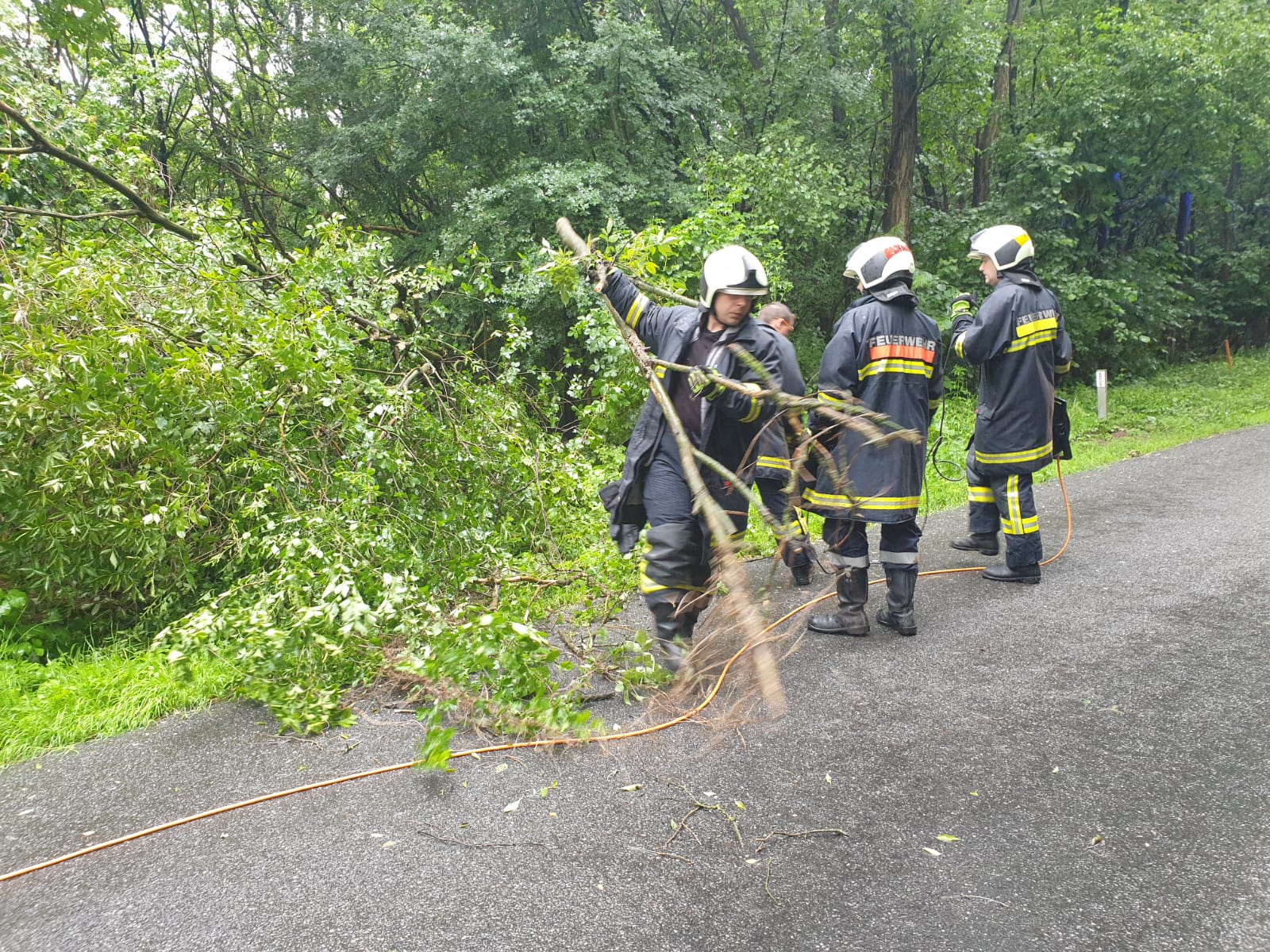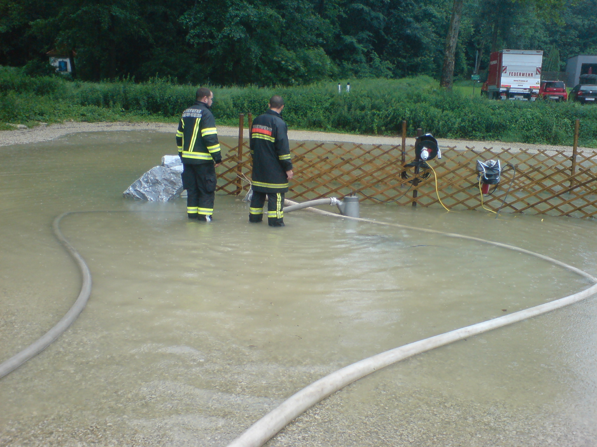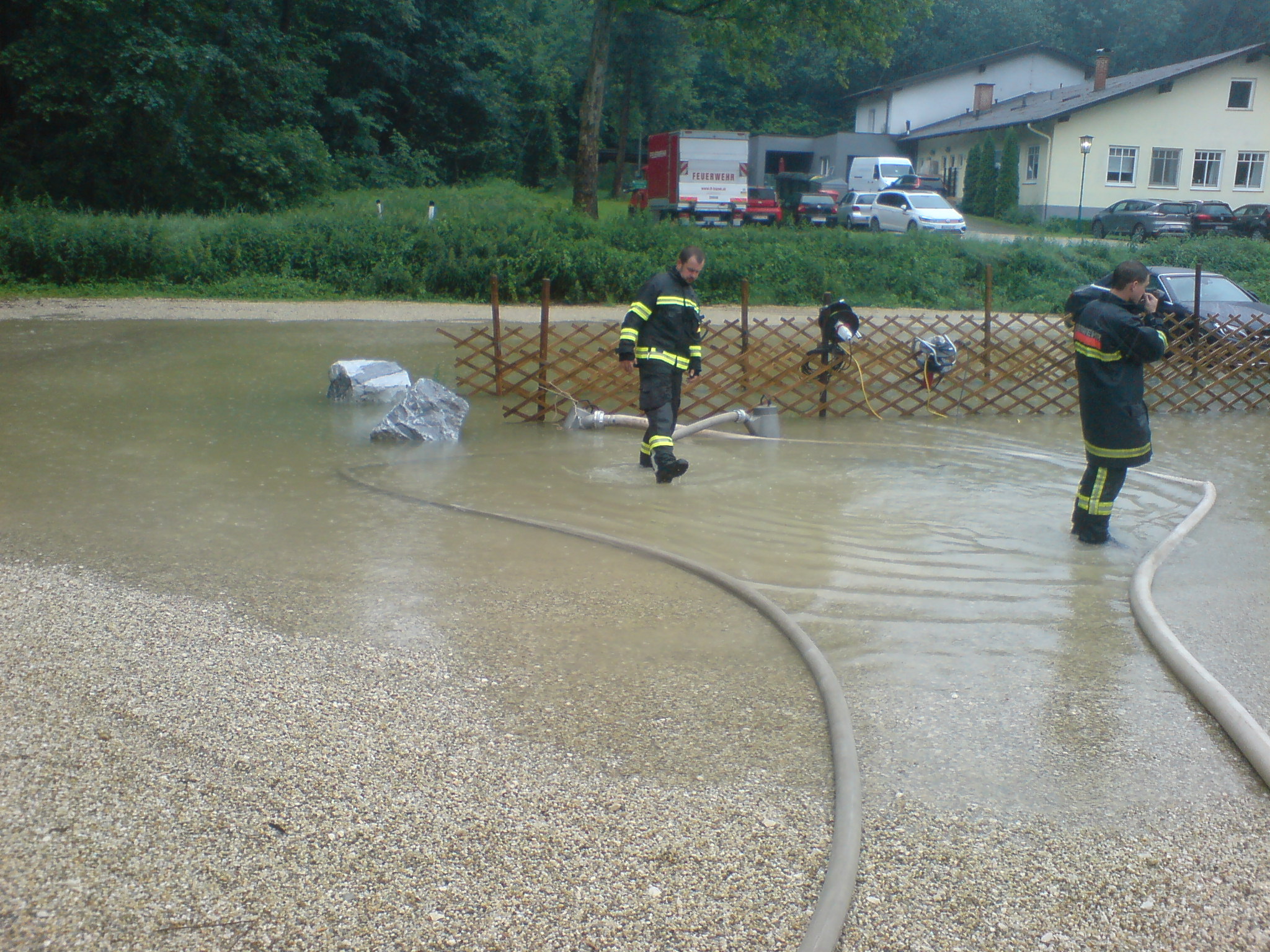 Nach starken und langanhaltenden Regenfällen galt es am Sonntag 21.06.2020 mehrere Einsätze abzuarbeiten. Neben einigen Auspumparbeiten in privaten Haushalten, wurde Wasser von einem überfluteten Parkplatz abgepumpt und ein umgefallener Baum von der Waldstraße im Rohrwald entfernt. Im Einsatz befanden sich zehn Feuerwehrmitglieder mit drei Fahrzeugen. Um den außergewöhnlich hohen Wassermengen Herr zu werden, kamen mehrere Unterwasserpumpen zum Einsatz.