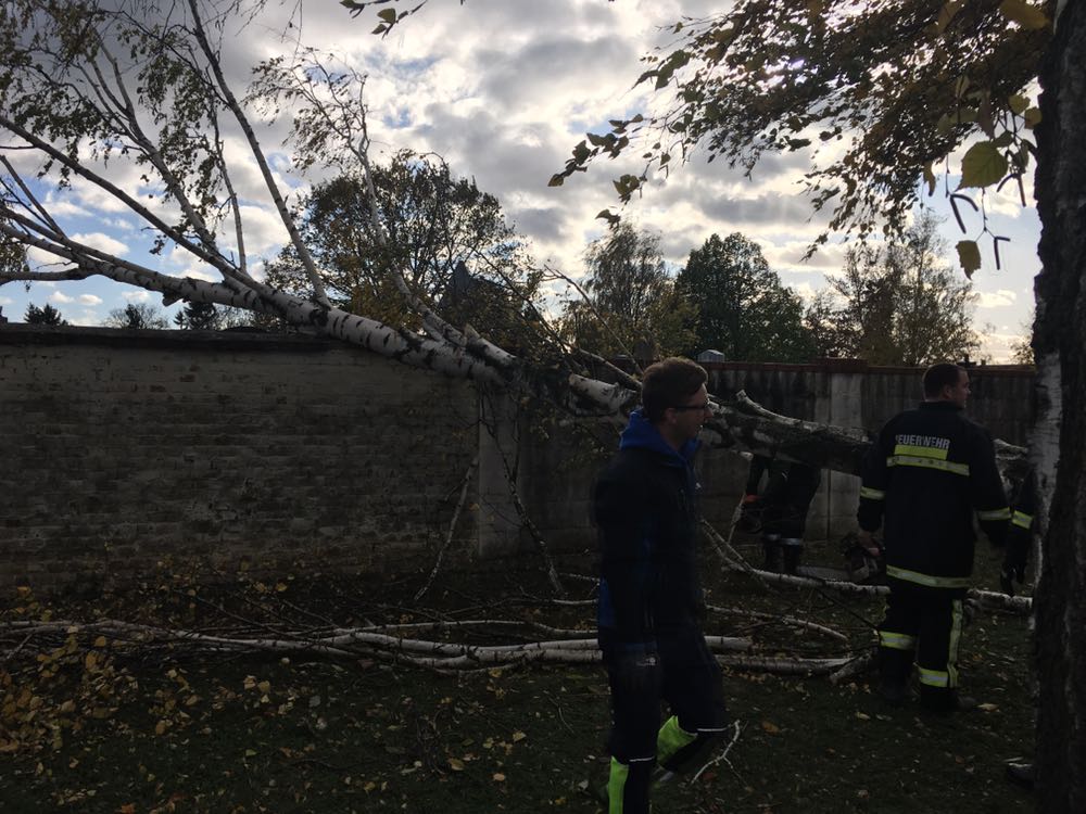 Am frühen Nachmittag des 29. Oktobers 2017 wurden wir zu einem weiteren Sturmschaden alarmiert. Hierbei handelte es sich um einen umgestürzten Baum, welcher auf der Mauer des Friedhofs zum Liegen kam.