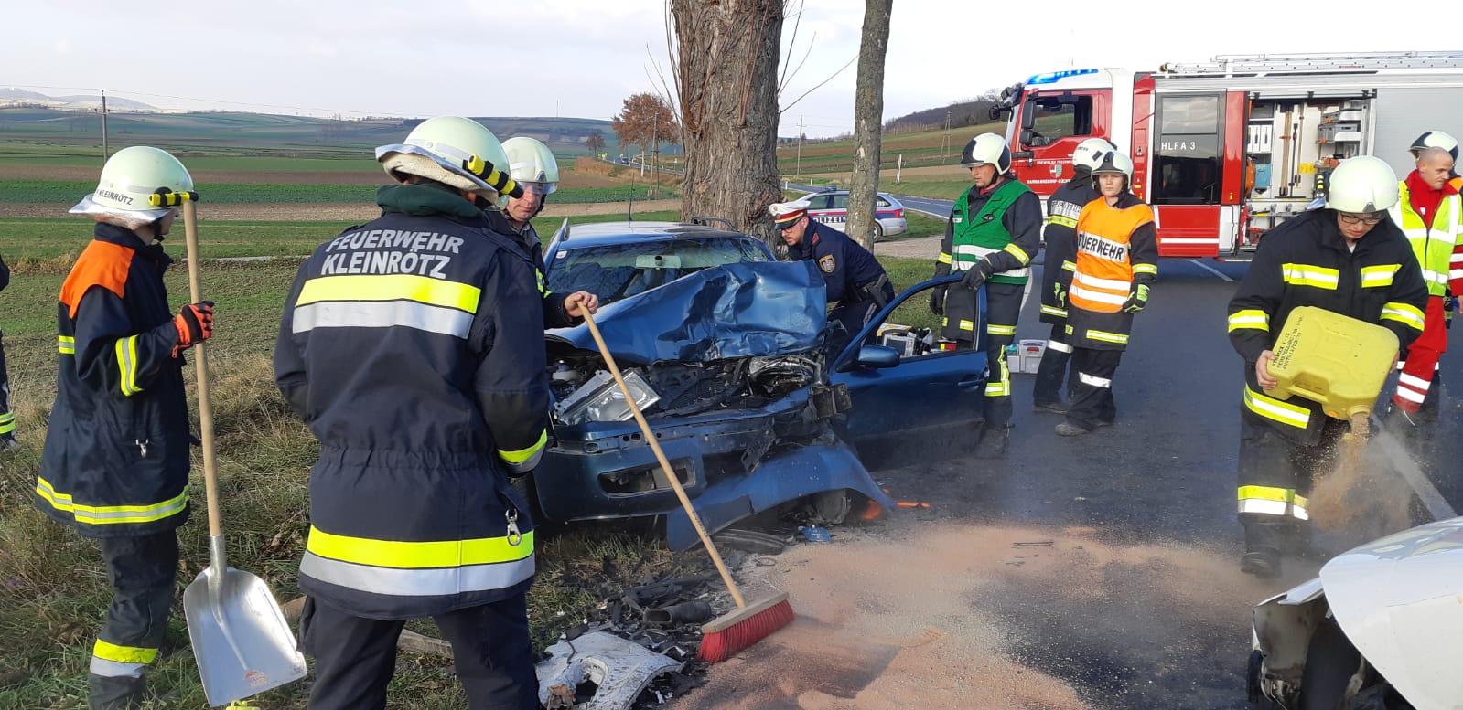 Am Donnerstag, dem 15.11.2018 wurden wir gegen 13.30 Uhr gemeinsam mit den Feuerwehren Kleinrötz und Stetten zu einem T2 - Verkehrsunfall mit eingeklemmter Person auf der LH 33 bei Kleinrötz alarmiert.