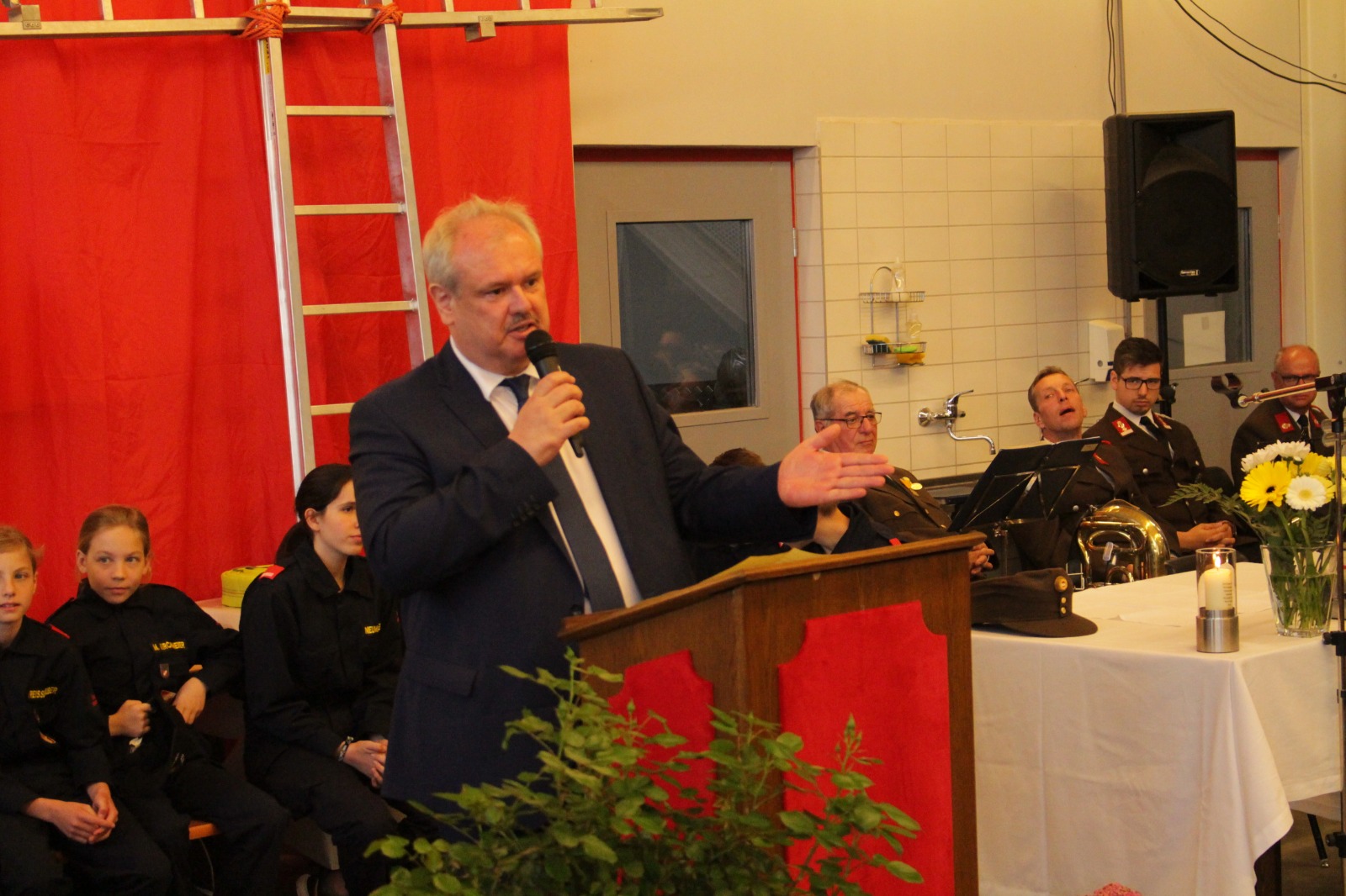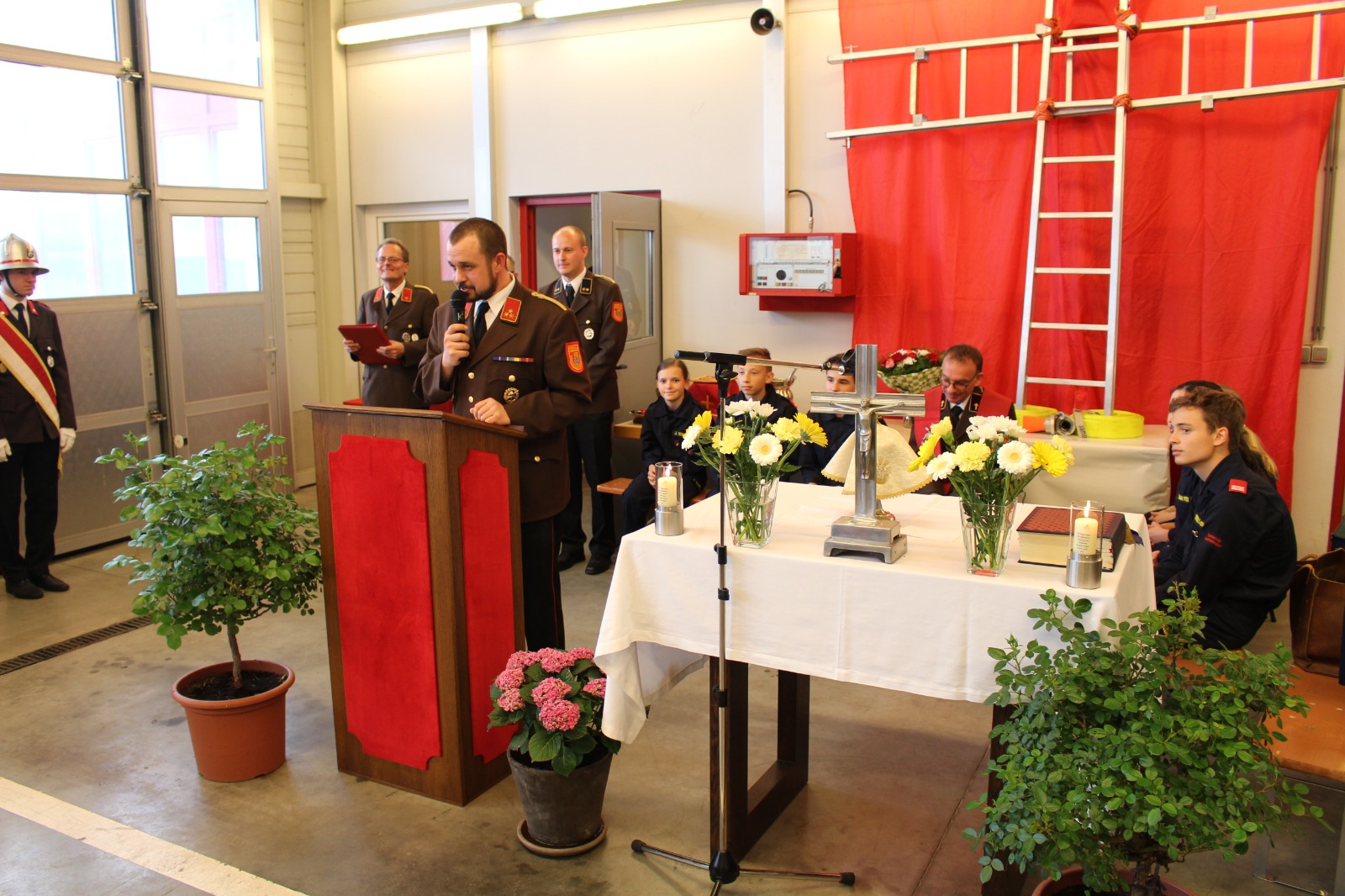 Die Florianimesse wurde von unserem Feuerwehrkurat, Mag. Hannes Saurugg, zelebriert. Höhepunkte der Floriani-Feierlichkeiten waren die Segnung des neuen Versorgungsfahrzeugs, die Überstellung eines Mitglieds von der Feuerwehrjugend in den aktiven Feuerwehrdienst und die Durchführung von zahlreichen Beförderungen. Des Weiteren wurde auch unserer verstorbenen Feuerwehrkameraden gedacht. Mit den Ansprachen unseres Feuerwehrkommandanten HBI Christoph Nebenführ, Bürgermeister Mag. Norbert Hendler und dem Abschnittsfeuerwehrkommandanten BR Hannes Holzer wurde der offizielle Teil der Florianifeier beendet.