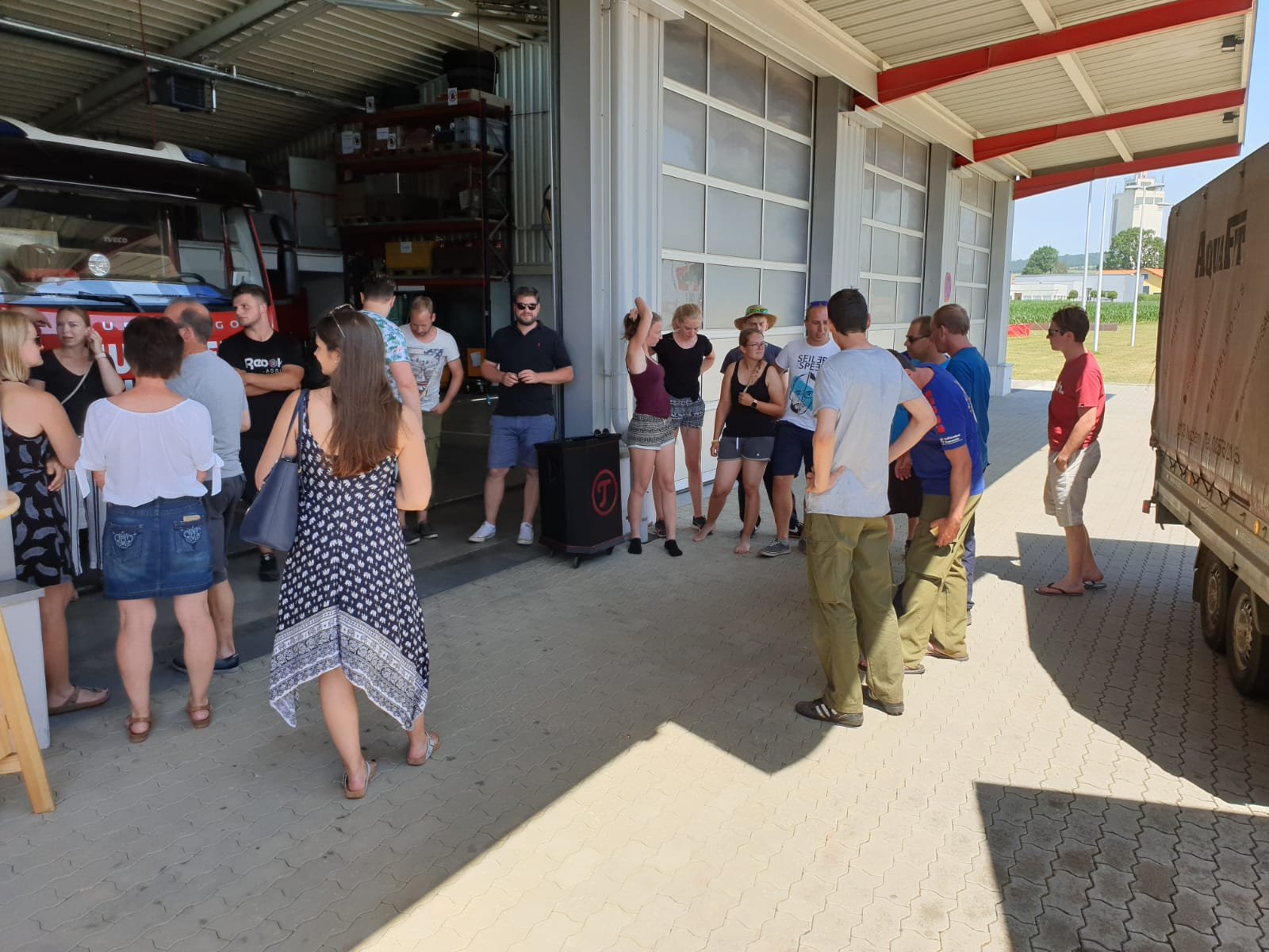 Am nächsten Tag wurden wir von unserer Feuerwehr bereits mit Wasserwerfer und Sekt feierlich empfangen.