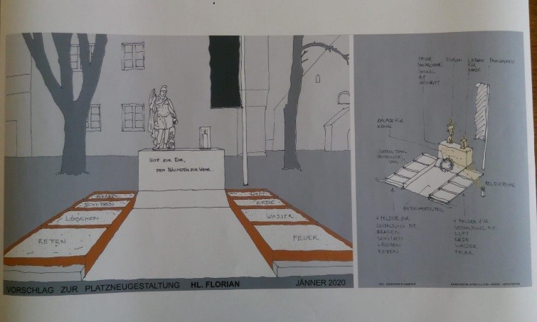 Jährlich findet am Florianitag die Kranzniederlegung nach der Heiligen Messe vor der Kirche in Harmannsdorf statt. Die Statue selbst, aber auch das Umfeld rund um den hl. Florian ist bereits in die Jahre gekommen und das war vor allem nach der Kirchen- und Pfarrhofrenovierung offensichtlich.