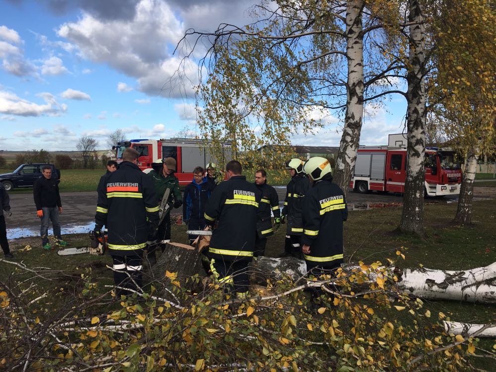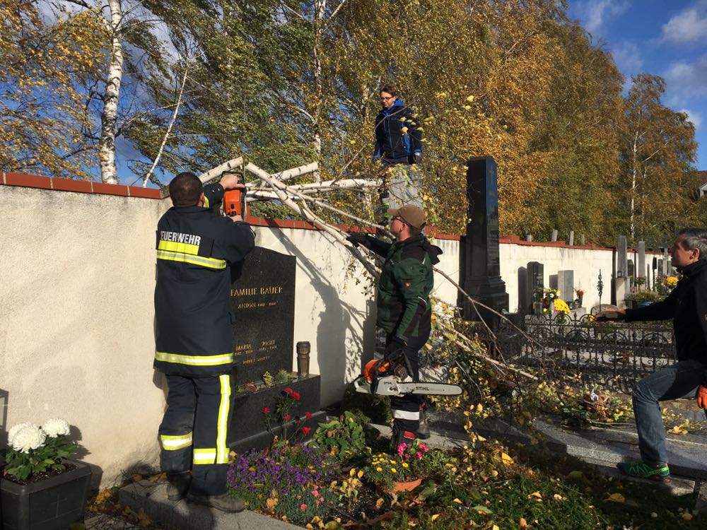 Am frühen Nachmittag des 29. Oktobers 2017 wurden wir zu einem weiteren Sturmschaden alarmiert. Hierbei handelte es sich um einen umgestürzten Baum, welcher auf der Mauer des Friedhofs zum Liegen kam.
