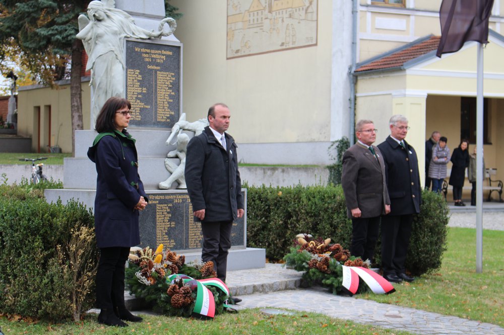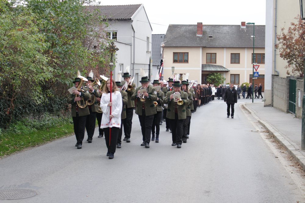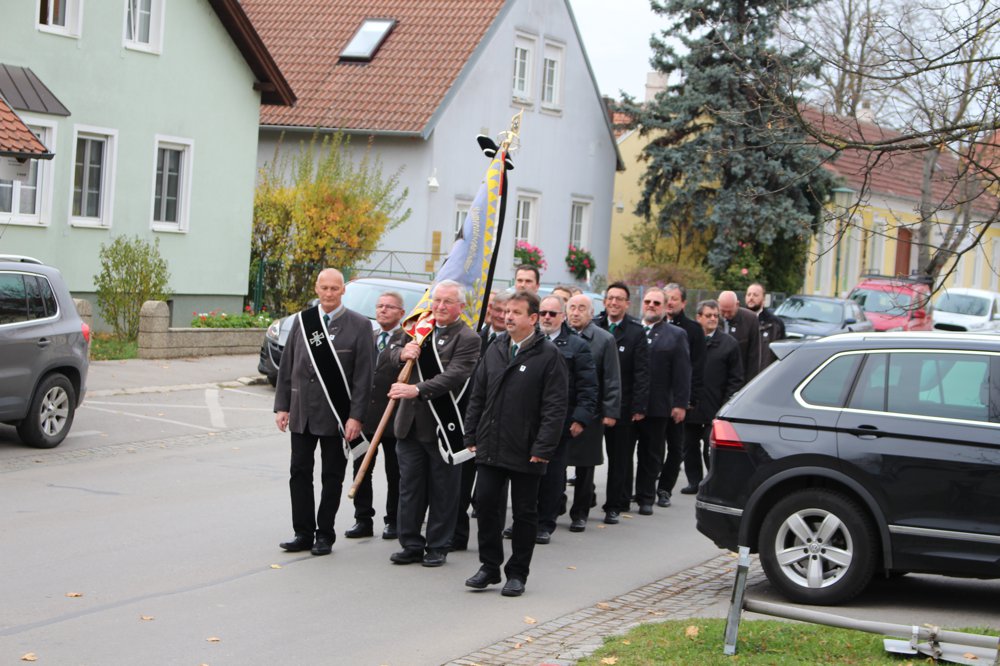 Nach der Allerheiligen-Andacht marschierte der gesamte Verband zum Kriegerdenkmal zur Kranzniederlegung und anschließend auf den Friedhof. Dort wurde die Gedenkfeier beendet.