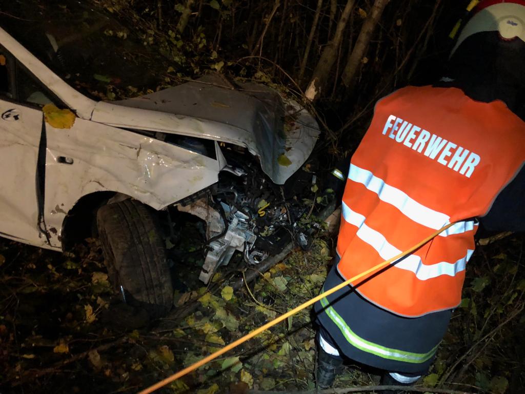 Am Einsatzort angekommen, fanden wir einen PKW ca. 25m in der Böschung ,von Bäumen und Sträuchern eingekreist, festsitzend wieder. Der Lenker sowie die Insassen des Fahrzeugs konnten sich selbst befreien und wurden unter Schock stehend den Einsatzkräften des Roten Kreuzes übergeben.