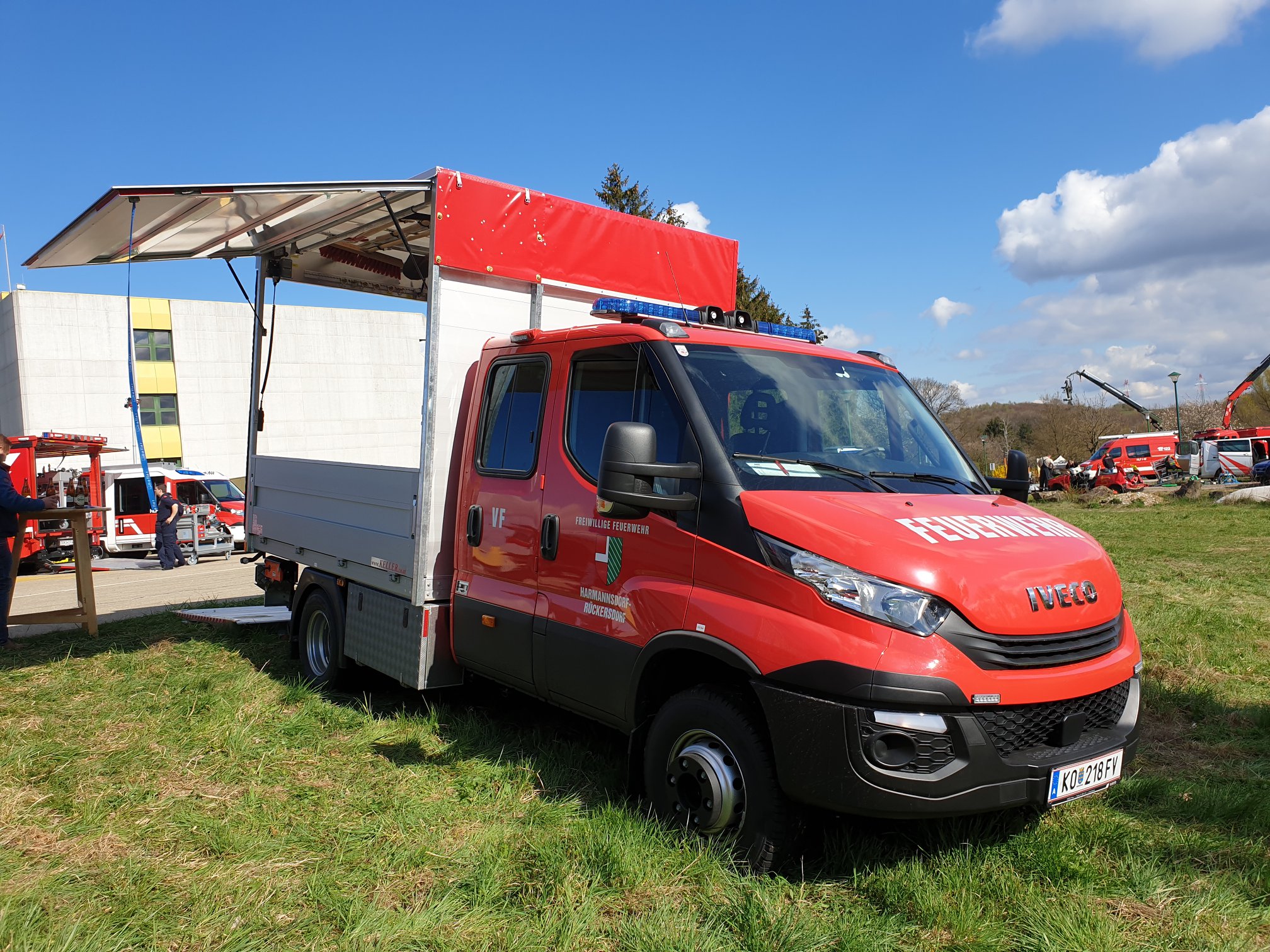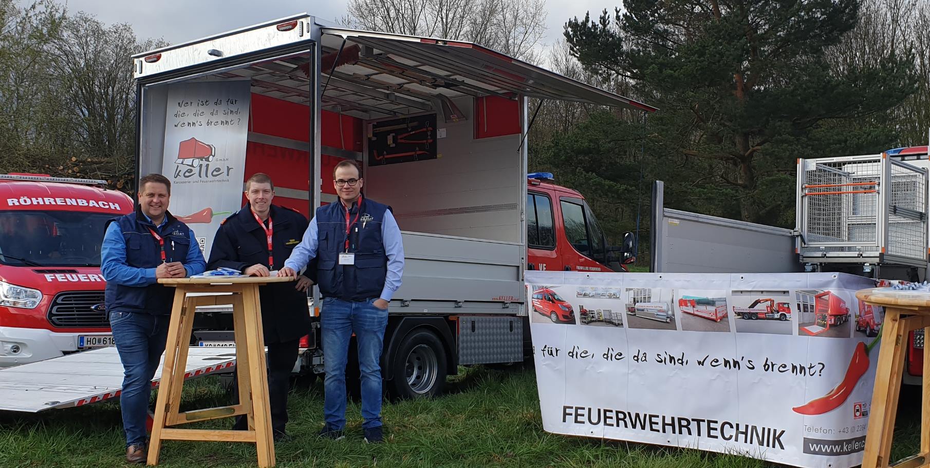 Unser neues Versorgungsfahrzeug wurde am Samstag, dem 06.04.2019 auf der FO Fachtagung und Fachausstellung am Messestand der Firma Keller Fahrzeugbau ausgestellt. Einmal im Jahr findet diese Fachausstellung am Gelände des Rehabilitationszentrums Weißen-Hof in Klosterneuburg statt. Die Überstellung unseres Fahrzeuges übernahm OBI Bernhard Kronberger. Herbert Widerna und Georg Lehner präsentierten stolz das erst vor einigen Tagen ausgelieferte Versorgungsfahrzeug. "Firma KELLER, der Spezialist für die, die da sind wenn´s brennt!"