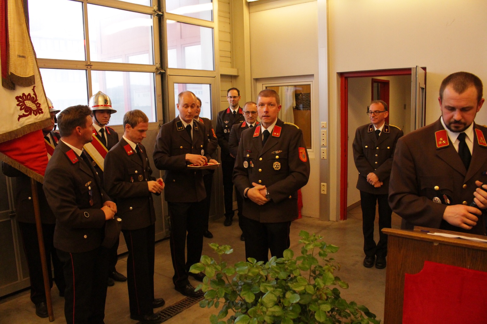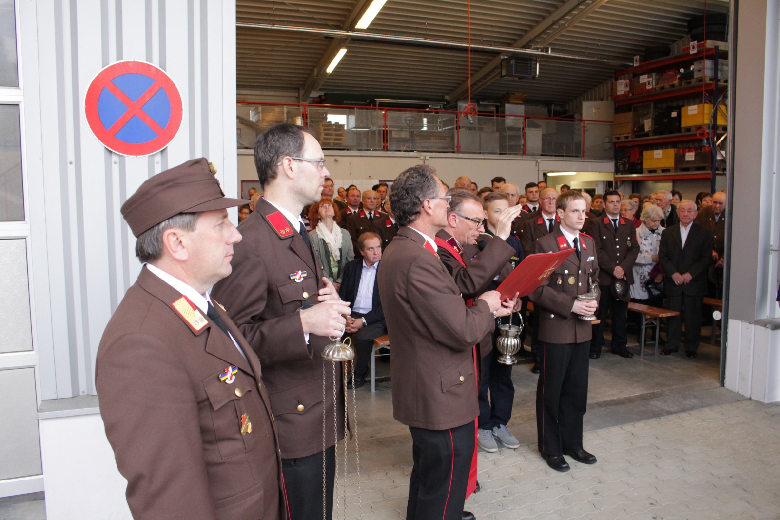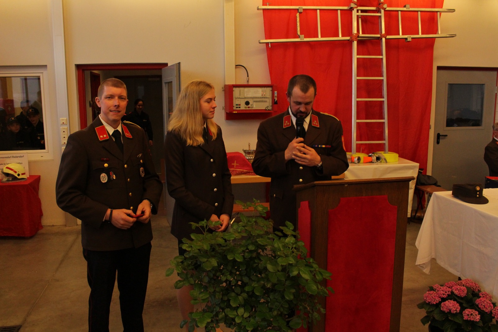 Gegenüber der ursprünglichen Planung wurde die hl. Messe aufgrund der Witterung von der Pfarrkirche Harmannsdorf in das Feuerwehrhaus verlegt. Vor der hl. Messe, wurde die Fahrzeugpatin, Frau Brigitte Hirsch, von unserem Feuerwehrkommando mit dem neuen Fahrzeug von zu Hause abgeholt. An dieser Stelle bedankt sich die Freiwillige Feuerwehr Harmannsdorf nochmals recht herzlich für die Übernahme der Patenschaft. Darüber hinaus bedankt sich die Freiwillige Feuerwehr Harmannsdorf-Rückersdorf auch noch bei allen Unterstützerinnen und Unterstützern, welche die Anschaffung des neuen Fahrzeuges überhaupt erst möglich gemacht haben.