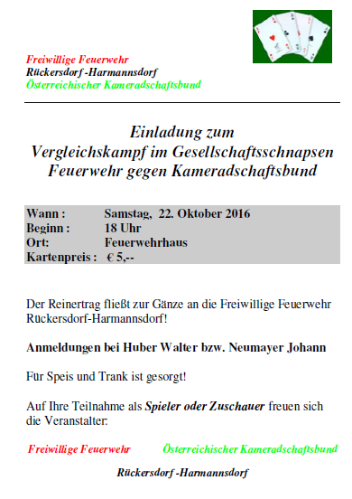 Am Freitag, den 28. Oktober 2016 fand die Atemschutzübung der Freiwilligen Feuerwehr Harmannsdorf-R .... mehr